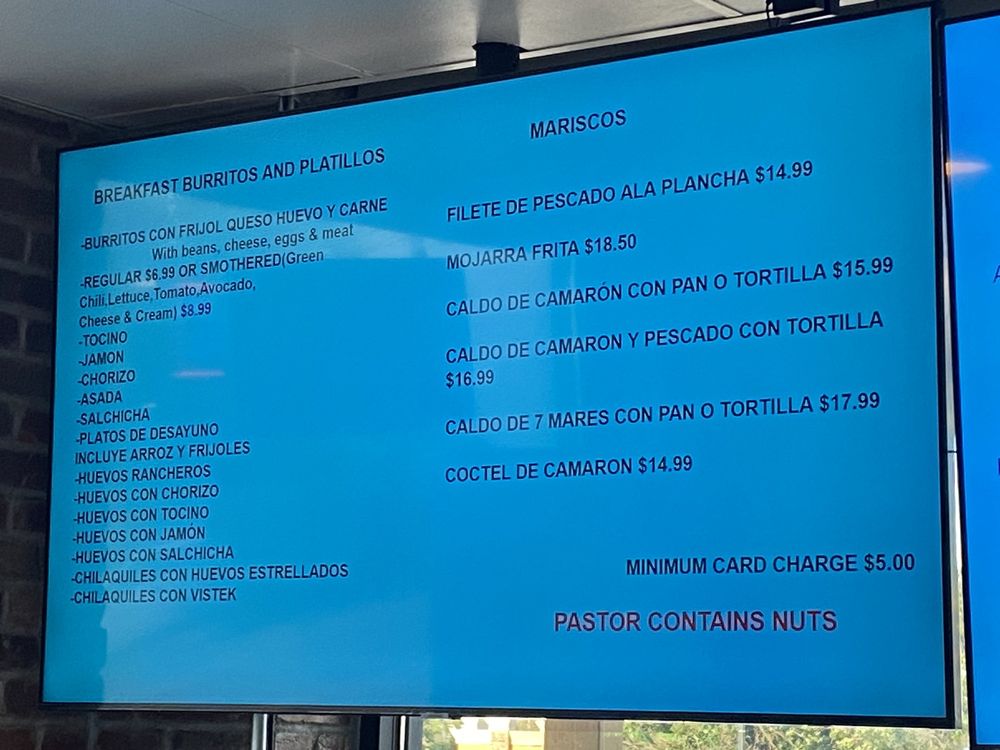 Introducing the menu at El Taco Veloz, located in Westminster, CO, this Mexican restaurant offers a variety of options for all palates. From seafood dishes like Grilled Fish Fillet and Shrimp Soup to flavorful Alambres with a mix of meats and veggies, the menu is sure to satisfy any craving. Indulge in traditional favorites like Tacos, Burritos, Sopes, Gorditas, and Tortas, including the popular Milanesa Sandwich and Burritos smothered in green sauce. With a range of options for vegetarians and meat-lovers alike, El Taco Veloz provides a casual dining experience with options for delivery, takeout, and even catering. Stop by for lunch, dinner, or a late-night bite, and enjoy the friendly service and welcoming atmosphere at this local gem.